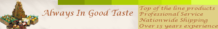 | Every item selected is a result of extensive research and we have developed many fun entertaining and delicious recipes ideas using our products to include with your purchase. With complete consideration of your theme,budget and time constraints we welcome your business. The management and staff at Always In Good taste e-mail: carol@giftstogourmet.com Phone orders welcomed * Corporate Accounts Welcomed! * Custom gifts and gourmet baskets All Occasions/All budgets * All your gift-giving needs * |